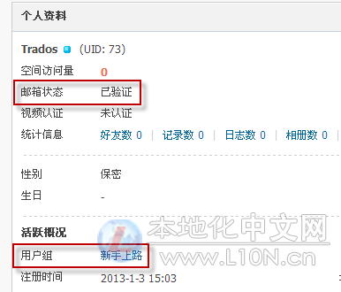 ![]() 这时候再查看“密码安全”中右侧的 Email,会显示“当前邮箱已经验证激活”,而在个人资料中,邮箱状态变成了“已验证”,用户组也变成了”新手上路 “。至此邮件验证完成。 ![]()